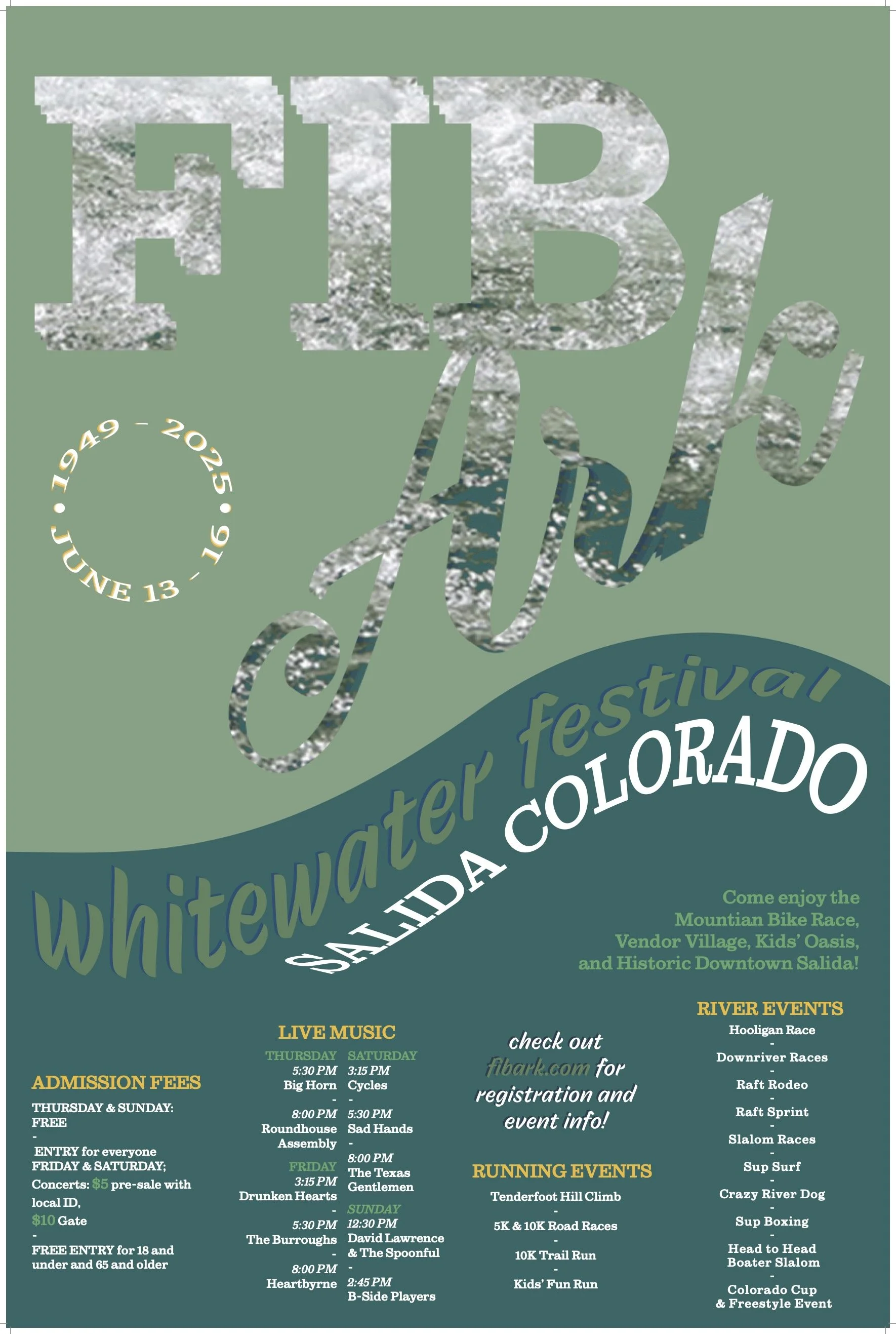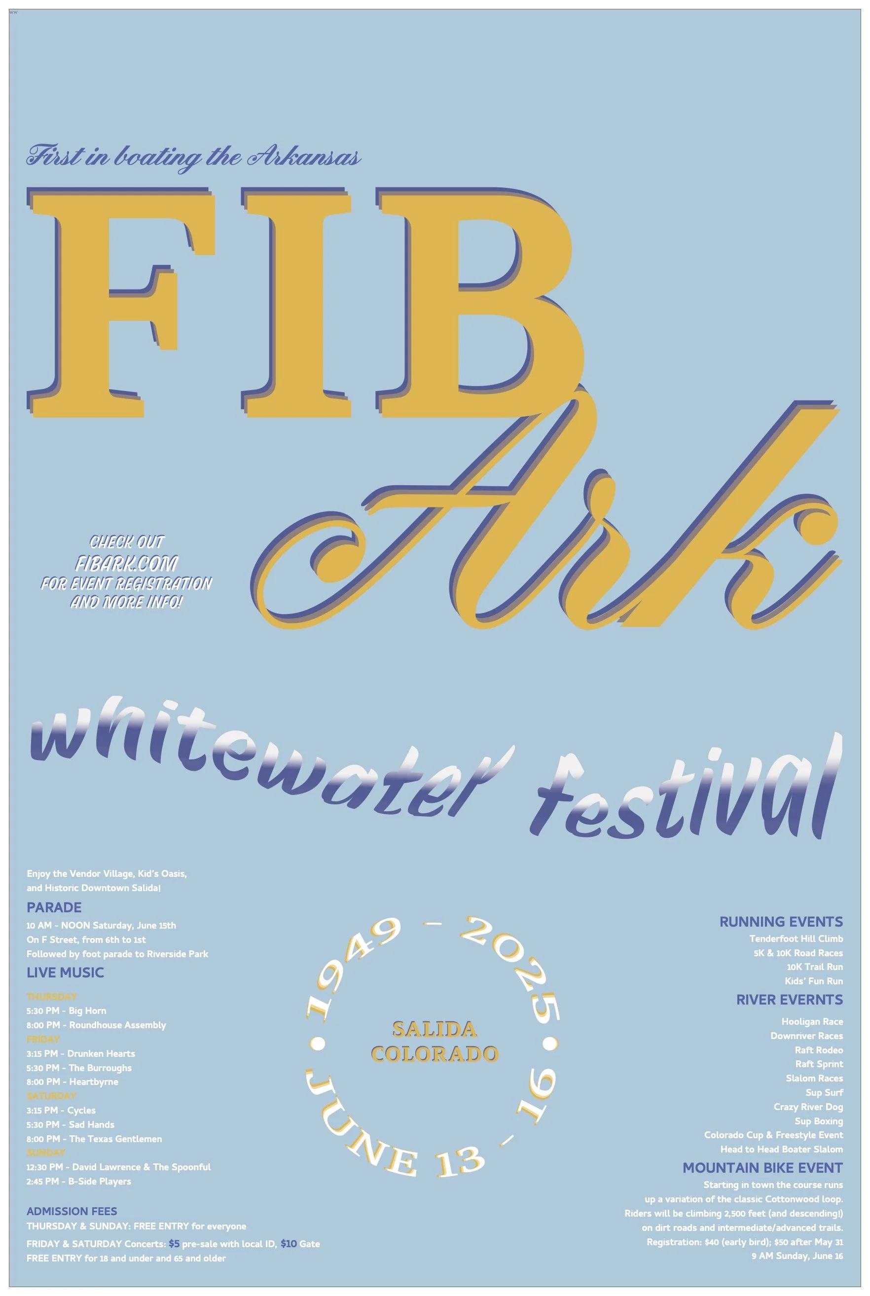 When designing my whitewater festival poster I really wanted to embody the movement of waves. I gave the title FIBArk whitewater texture that blended in with the color palette making it the main hierarchy while still directing the eye downwards towards the information. The ratio of leading text to informational text was successful. With movement of the eye leading left to right I aligned the Admissions Fees to the left and the Live Music text boxes to be aligned against each other to ground the text and follow the direction of the subtitles. I focused on proportions when distorting my text, making sure the text fit with each other to make the wave.
